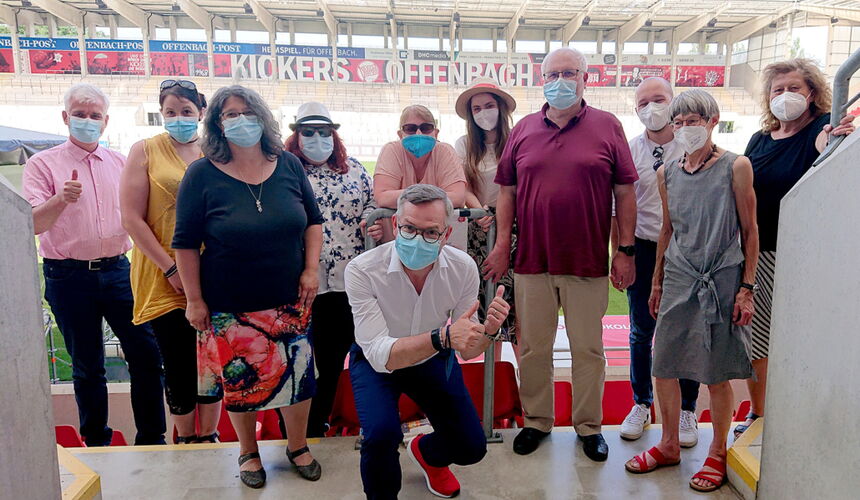 Die Delegierten der SPD Hersfeld-Rotenburg im Stadion am Bieberer Berg in Offenbach v. l.: