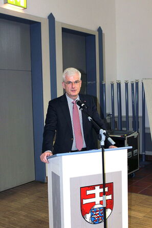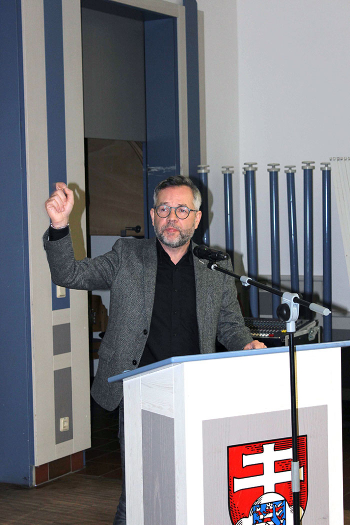 Der Parteitag begann mit einem Grußwort des Staatsministers für Europa und Bundestagsabgeordneten für Werra-Meißner/Hersfeld-Rotenburg Michael Roth. Dieser verwies zunächst auf die aktuellen Diskussionen in der Europäischen Union zur Rechtsstaatlichkeit aller Mitgliedsstaaten und dem Rechtsstaatsmechanismus. Rechtsstaatlichkeit sei eine der Grundvoraussetzungen für ein gemeinsames Europa. Das wäre den Nationalisten und Populisten allerdings völlig gleichgültig. „Deren Politik muss schmerzhaft auf die Schnauze fallen“, so Roth leidenschaftlich. Anschließend warb er für die Kandidatur seines langjährigen Wegbegleiters Torsten Warnecke. „Keiner im Raum kennt Torsten so lange wie ich. Und deshalb unterstütze ich seine Kandidatur nachdrücklich.“